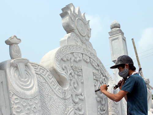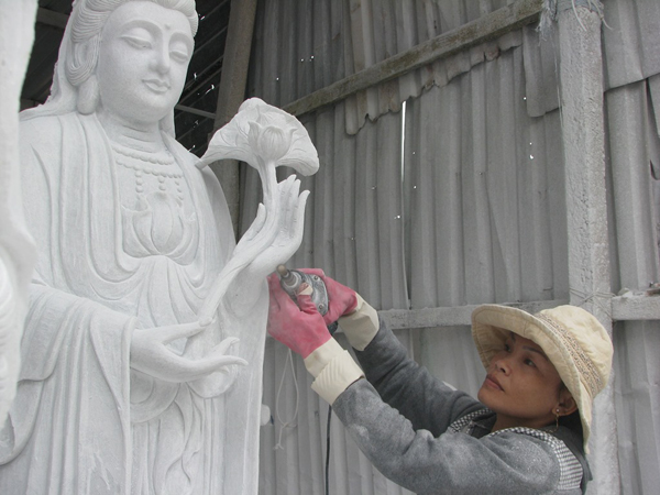 Sau khi tạo được hình dáng cơ bản của tượng, nghệ nhân dùng các dụng cụ mài giũa để đưa tượng về đúng hình dạng cuối cùng, loại bỏ những phần đá nhỏ còn dư thừa. Dụng cụ mài nhỏ sẽ được dùng để tạo những chi tiết tinh tế như các nếp gấp quần áo, các lọn tóc.